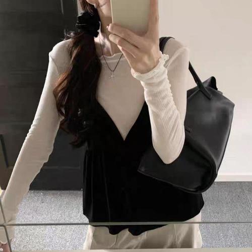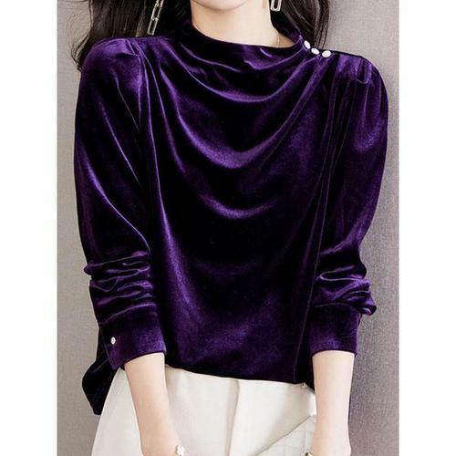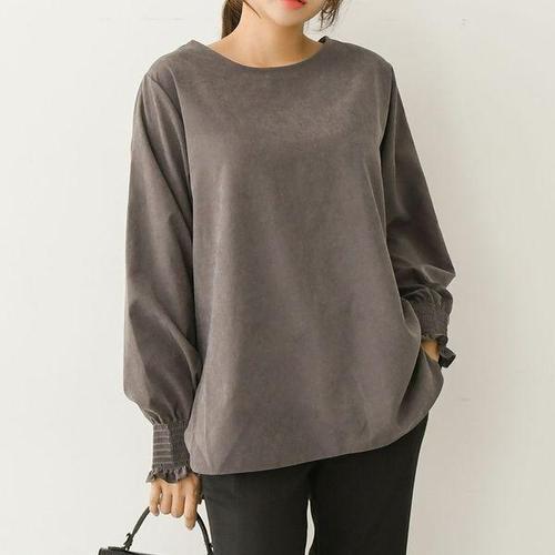 PINK LITCHI 여성용 긴소매 티셔츠 가을 빅사이즈 벨벳 블라우스 LUCK28