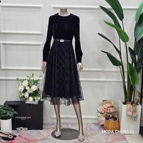 [미니멈]MD 라운드 셔링넥 벨벳 샤 플리츠 원피스 MD MXDAWO0240 M_CJ