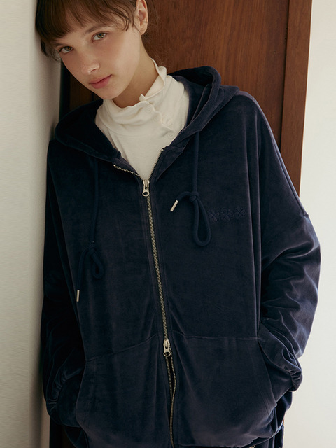 [오디에르] 벨벳 투웨이 후드집업-네이비