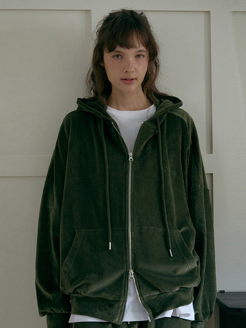 [오디에르] 벨벳 투웨이 후드집업-카키