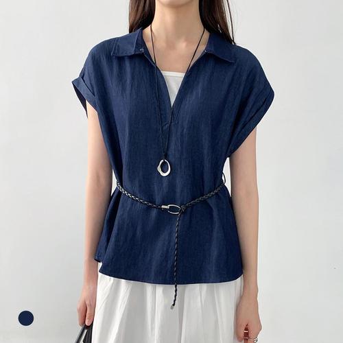 클라셰 77까지 레이어드롤업캡블라우스+벨트SET B5M1382