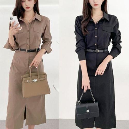 심플 베이직 우먼 블라우스 롱드레스업벨트 베스트 세트아이템