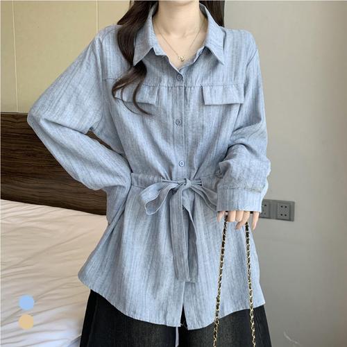 포인티드 칼라 웨이스트 벨트 코튼 셔츠 809066TNM60 9000