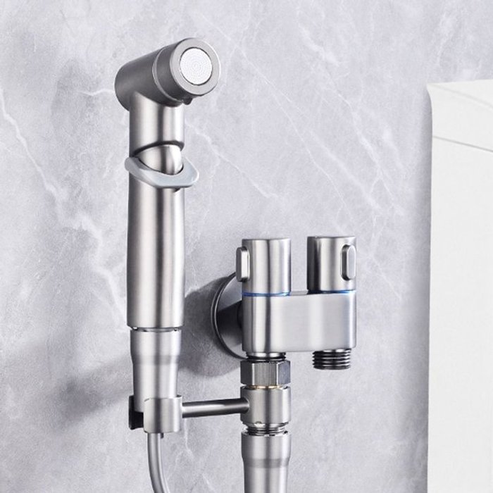 ZOZOFO 욕실 청소 변기샤워기 304 스텐 일체형스프레이건 +2m그레이 코일호스+T밸브