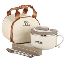 SoBuy 스테인레스 304 보온 도시락 + 수저 + 가방 세트, 1개, 화이트