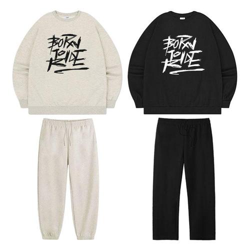 [에어플레인]본 투 라이드 오버핏 맨투맨 조거 와이드 팬츠 세트 (3color)