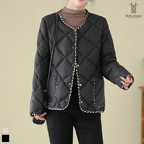 벨라도나 여성 겨울 다이아퀄팅 노카라 단추 패딩자켓 이너 경량점퍼 Bon-2566