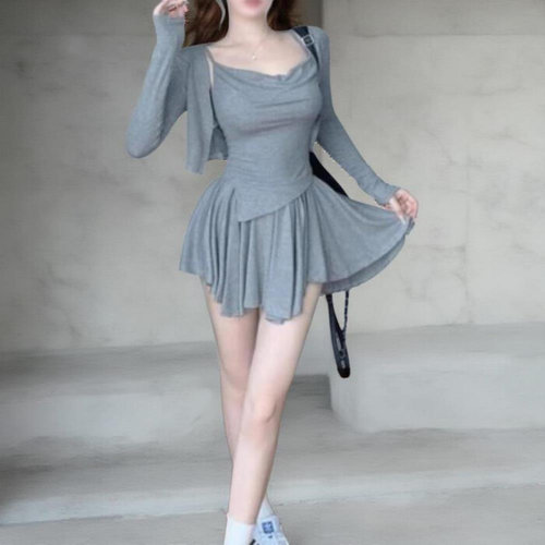 여성 바스트 셔링 볼레로 가디건 홀터넥 미니 원피스