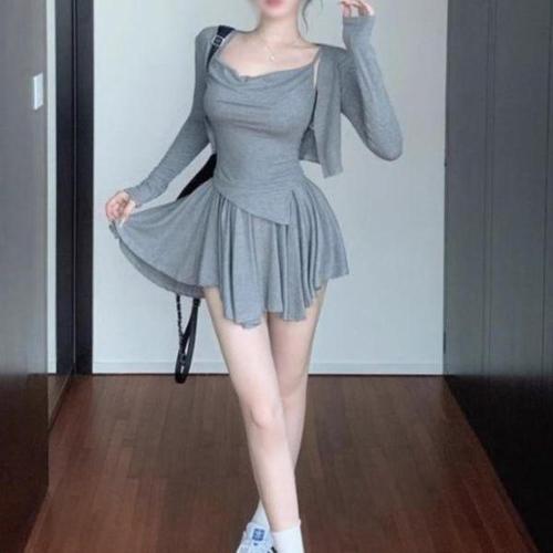 [옷자락]여성 바스트 셔링 볼레로 가디건 홀터넥 미니 원피스_P407231850