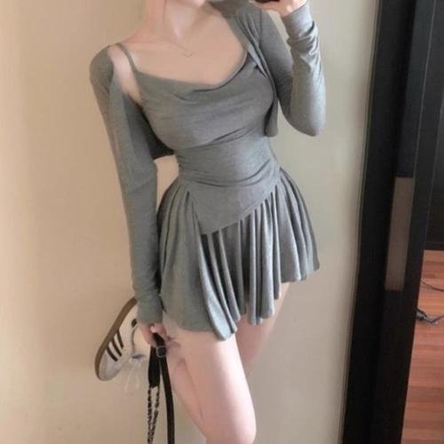 [옷자락] 여성 슬림핏 나시 볼레로 미니 스커트 세트