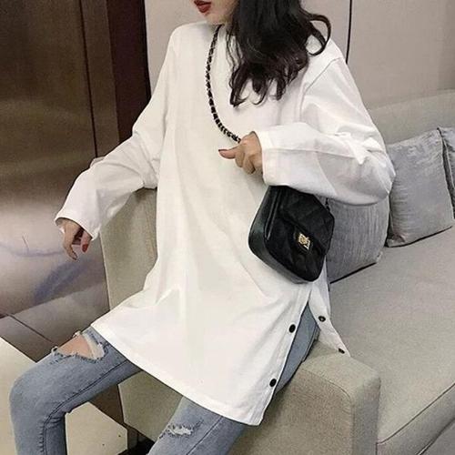 [에이치플러스몰]밑단 빈티지 여성 긴팔 롱 티셔츠 봄