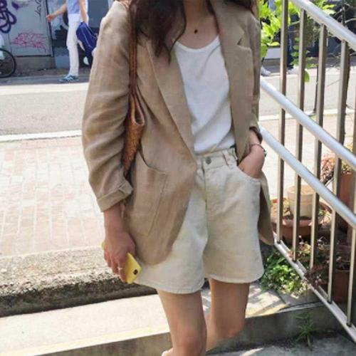 여름캐주얼룩 여성 패션 코디 루즈핏 린넨 긴팔 자켓 봄가을 얇은