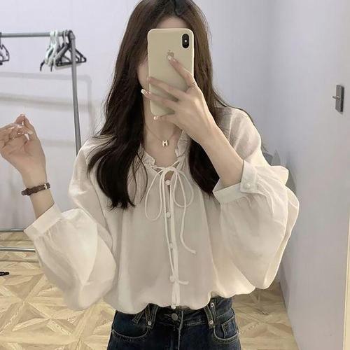 [에이치플러스몰]여성 러블리핏 리본넥 셔링 루즈핏 블라우스 봄 코디