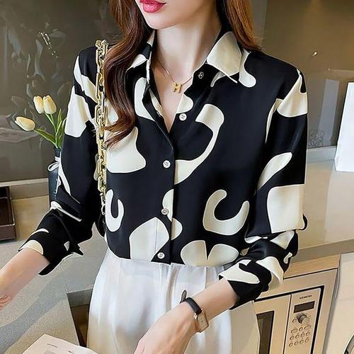 [에이치플러스몰]여성 출근룩 오피스룩 셔츠 프린트 블라우스 봄 코디