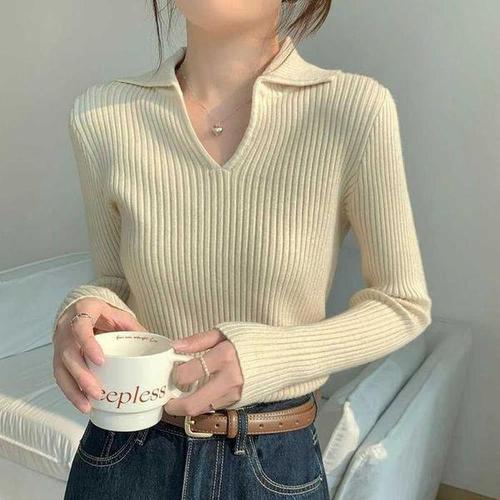 [셀러허브_여성트랜드패션]ONM 여성 오피스 룩 코디 봄 가을 골지 카라 브이넥
