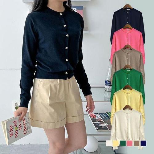 [에이치플러스몰]라운드 라운드니트 코튼 데일리 가디건 니트 봄