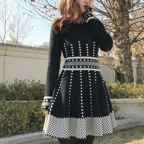 ORZQU 여성 가을 패션 우아하고 롱 원피스 고급 부드럽고 니트 원피스