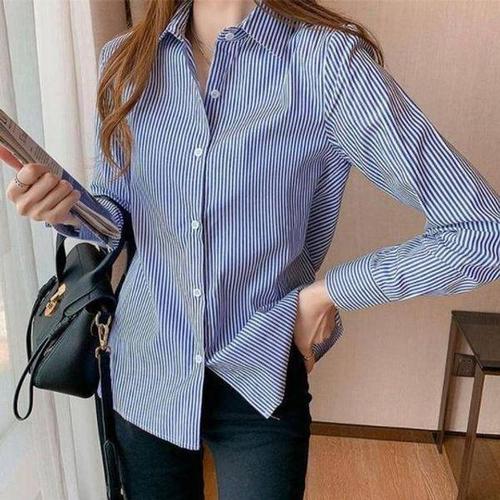 [셀러허브_여성트랜드패션]ONM 스트라이프셔츠 여성 셔츠 봄가을 블라우스 면접