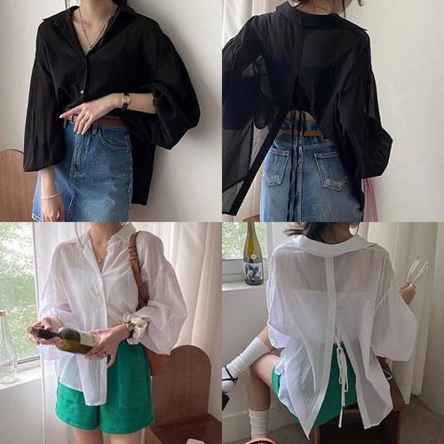 [오노마] ONM 플레인트임숙 긴팔 여름얇은 리본 무지 찰랑 봄 리본