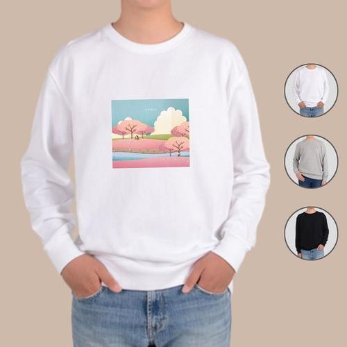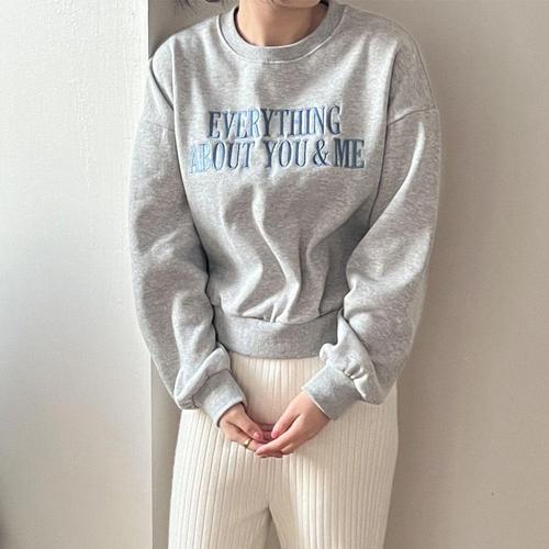 [문에이블]문에이블 여자 여성 가을 봄 간절기 루즈핏 세미크롭 캐주얼 영문자수 긴팔 맨투맨