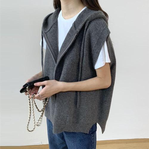 [문에이블]문에이블 여자 여성 가을 겨울 간절기 루즈핏 박스핏 88가능 레이어드 니트 집업 후드 조끼