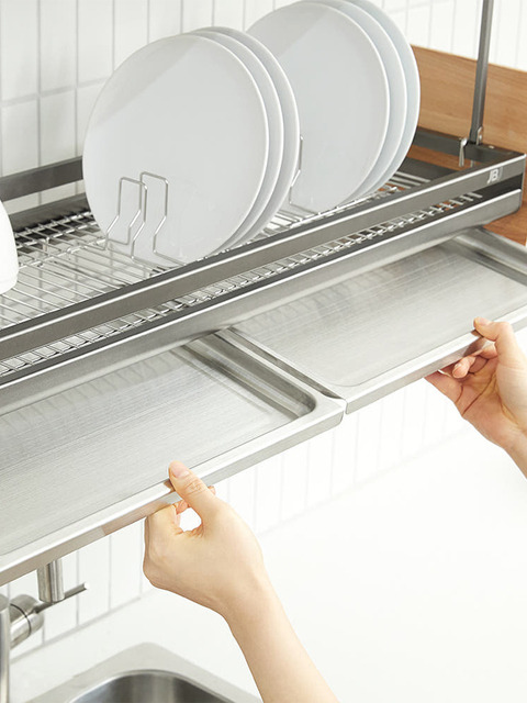 광폭슬라이드 씽크선반 900-1단(스텐쟁반)식기건조대 부착식건조대 부착식식기건조대 부착형식기건조대 상