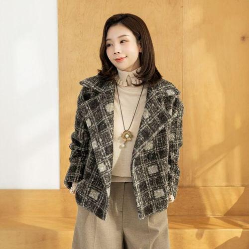 스타일라떼 / 몽글몽글 부클 하프 코트 여성 겨울 노카라 더블코트 사랑스러운 아우터
