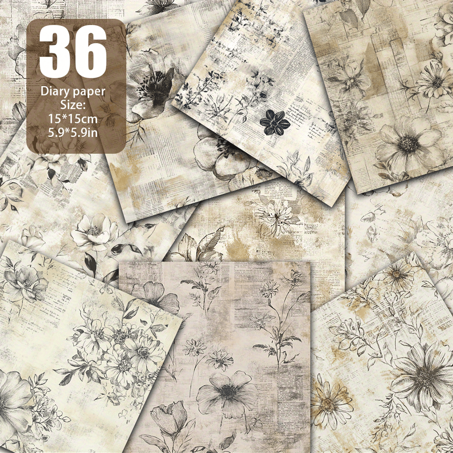TEMU 빈티지 수제 꽃무늬 스크랩북 종이, 배경 장식용 재료용 종이, 레트로 다이어리, 그런지 다이어리, 핸드메이드 카드 배경, 카드 매트, 인사말 카드 제작 등에 적합한 빈티지 손그림 텍스처 종이 사양: 5.9 * 5.9인치 36장