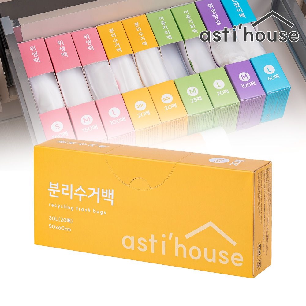 서랍쏙 수납형 분리수거백 30L(20매) 50x60cm 배접 재활용 쓰레기 비닐 봉투 봉지