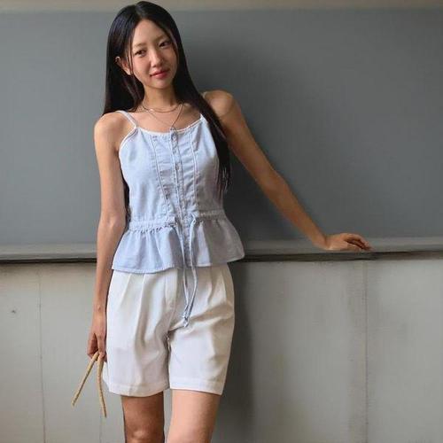 [신상오픈런]여성 여름 면 레이스 셔링 민소매 뷔스티에 청 나시