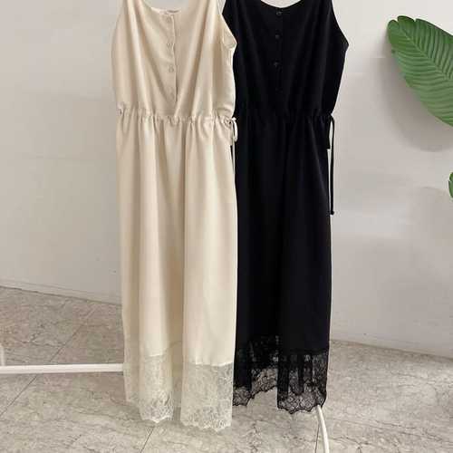 휘플 레이스 버튼 끈나시 뷔스티에 롱 원피스(2color)