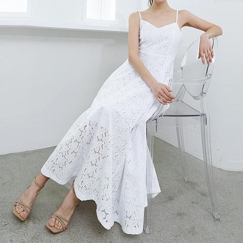 ONM 뷔스티에 나시 레이어드 롱원피스 펀칭 레이스 시스루