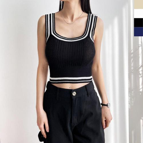 블레오 여자 여름 뷔스티에 배색 크롭 니트 나시 DM2512161669