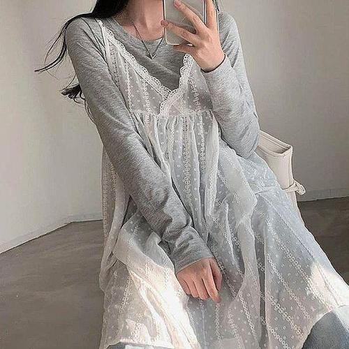 엘케이트 여성 끈나시 샤 뷔스티에 사계절 시스루 레이어드 원피스 LFER001