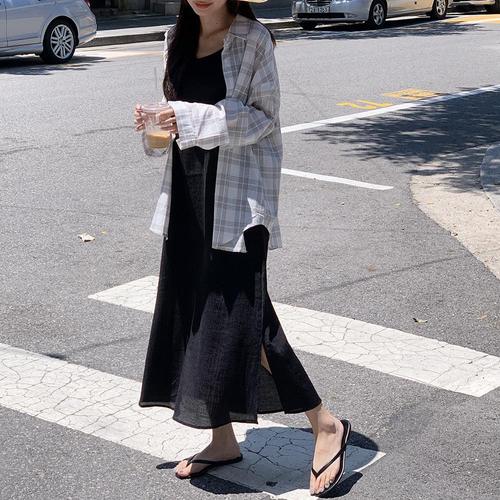 [MADE] 리레이 썸머 뷔스티에 스트링 나시 롱 슬릿 원피스 (2color)