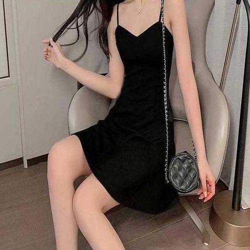[에이치플러스몰]끈나시 여성 블랙 미니 원피스 플레어 뷔스티에