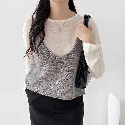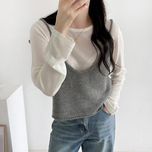여성 스트랩 리본 나시 뷔스티에 양면 니트 조끼 NYS-WVS-4794-그레이