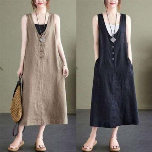 [모노무드]모노무드 xmfl-2 여성 여름 원피스 뷔스티에 롱 딥버튼 면 브이