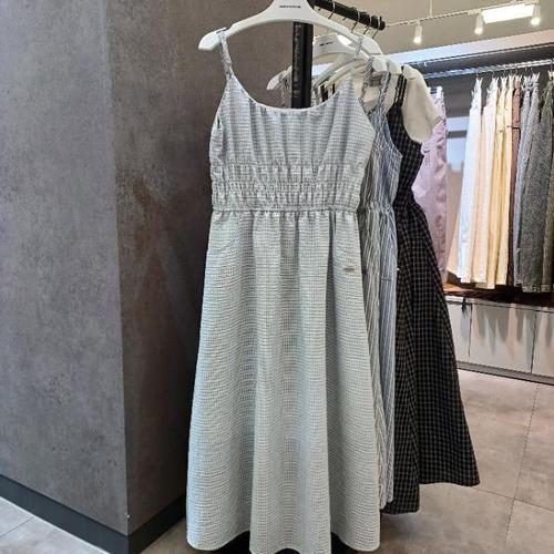 [에이치플러스몰]체크 뷔스티에 롱원피스 나시 데일리룩