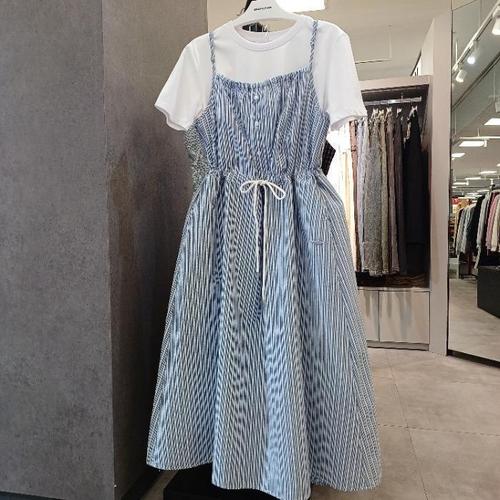 [드리다]여성 여름 체크 뷔스티에 주름지 빅사이즈 레이어드 롱 원피스 미시 캐주얼 등원 출근 바캉스룩