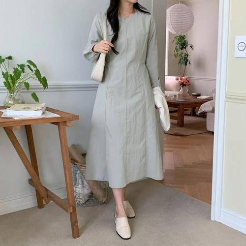 보들보들 스판 단가라 뷔스티에 롱 원피스 (2color)