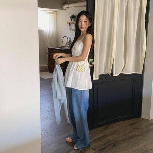[에이치플러스몰]온나핏 데님 뷔스티에 끈나시 롱니트 여성 레이