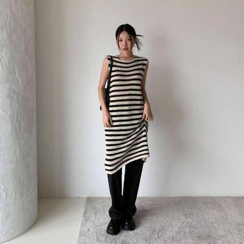 [에이치플러스몰]뷔스티에 여성 니트 루즈핏 셔츠 온나핏 민소매