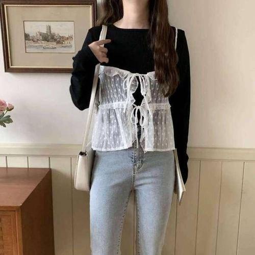 [신상오픈런]레이스 프릴뷔스티에 발레코어 투피스 골지가디건 캉캉