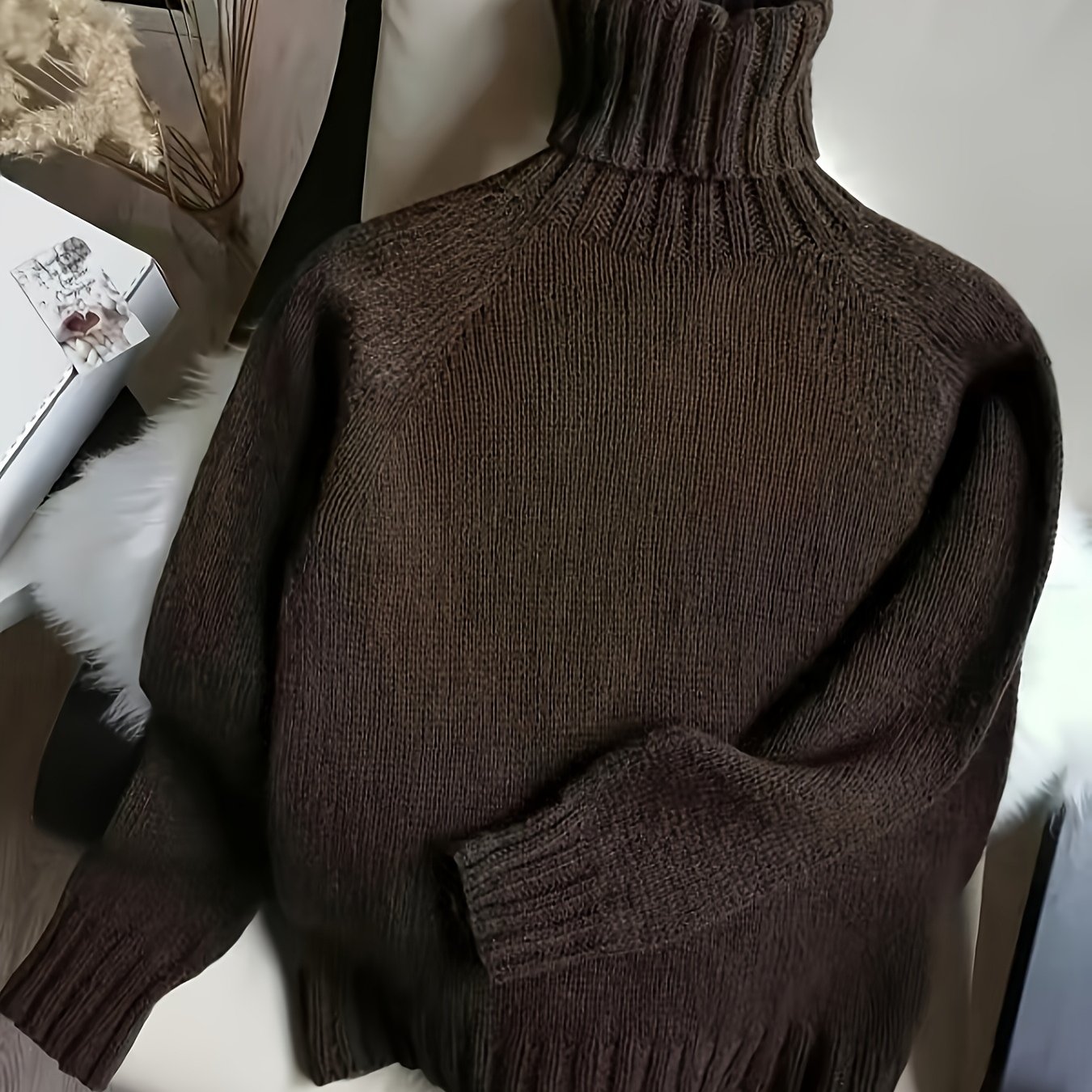 TEMU 여성 솔리드 컬러 우아한 터틀넥 스웨터 기저-layer