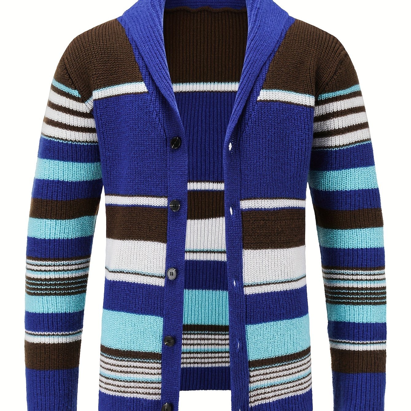 TEMU 남성용 캐주얼 가을/겨울용 폴리에스터 V넥 컬러 블록 니트 가디건 스웨터, 스커트 핏, 중간 스트레치, 350g/m²