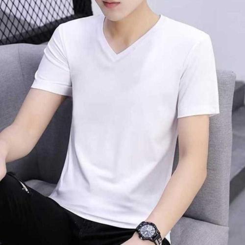 남성 반팔 티셔츠 여름 아이스 실크 시원한 무흔 캐주얼 V넥 티셔츠 상의