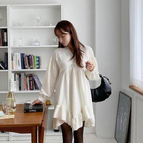 [에이치플러스몰]원피스 여름 데님 브이넥 트위드 셔츠 미니 쉬