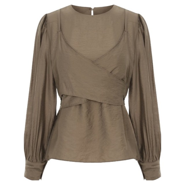 [벨라디터치]밑단 스트링 티블라우스 V3F27_GN