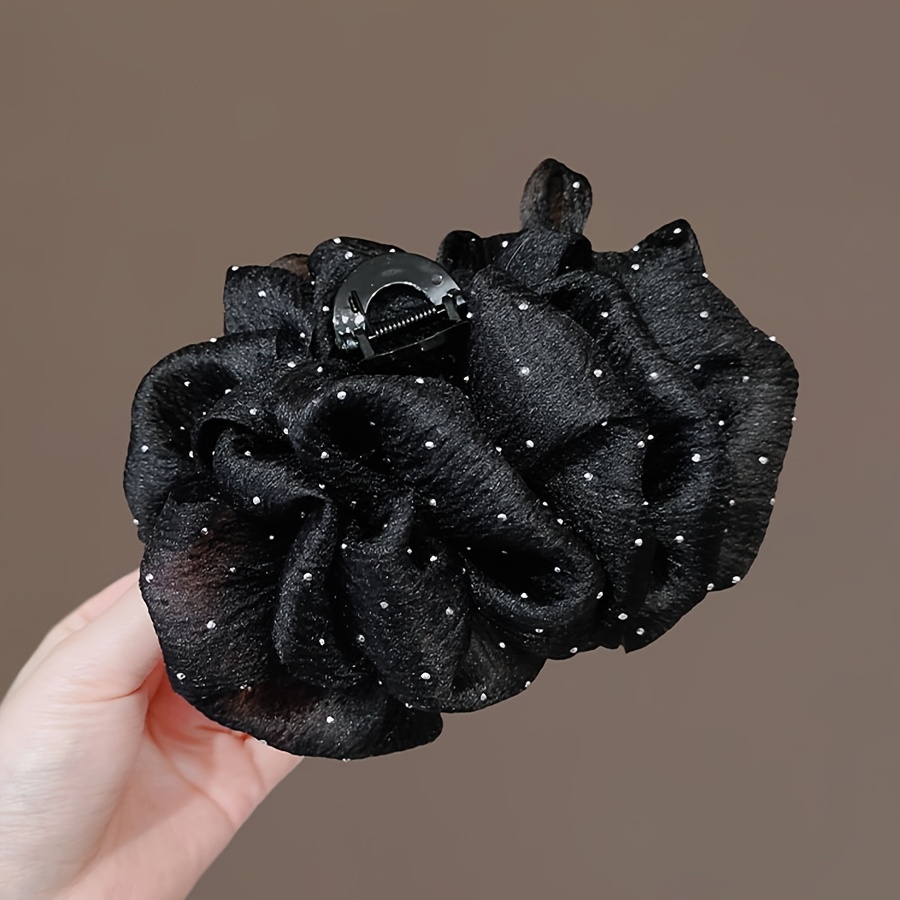 TEMU 여성용 우아한 양면 리본 헤어 클립, 다용도 메쉬 버블 상어 그립과 우아한 뒤통수 디자인